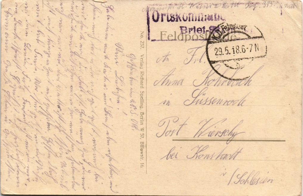 - Neuerbaute Straße, WK1 gel. Ortskommando-Briefstempel