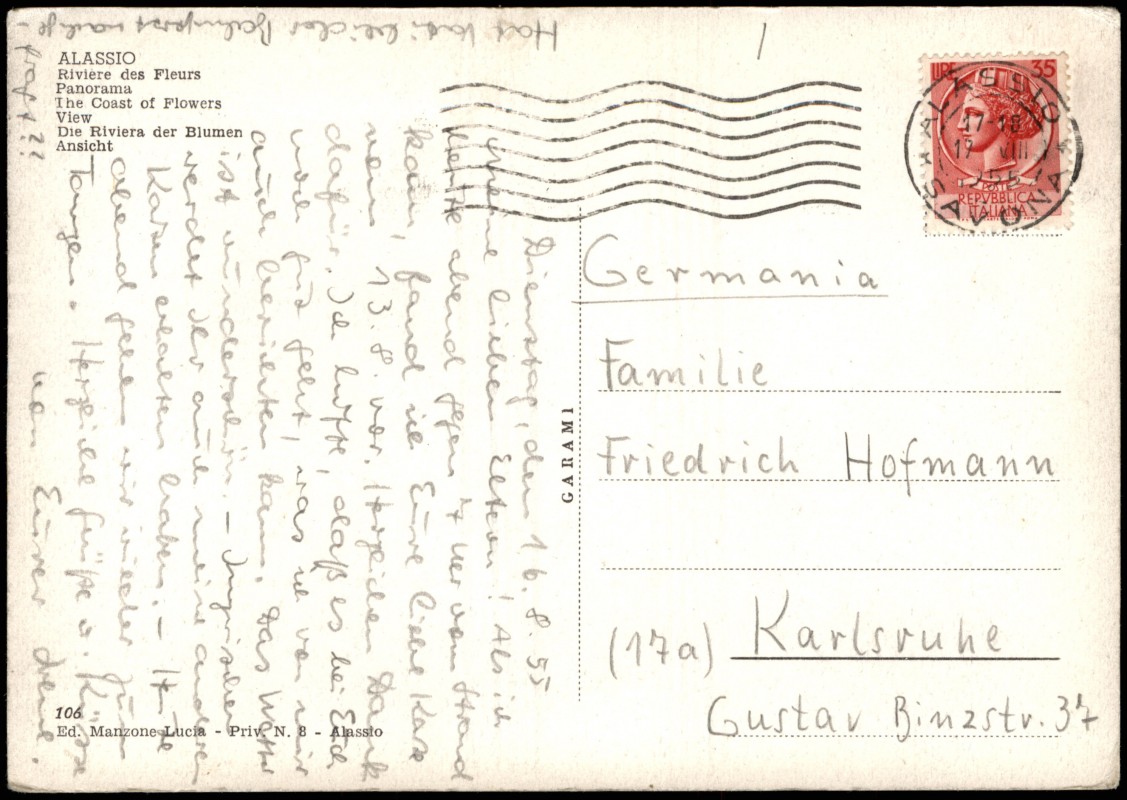 Photo Card: Panorama-Ansicht, Riviera der Blumen - Alassio