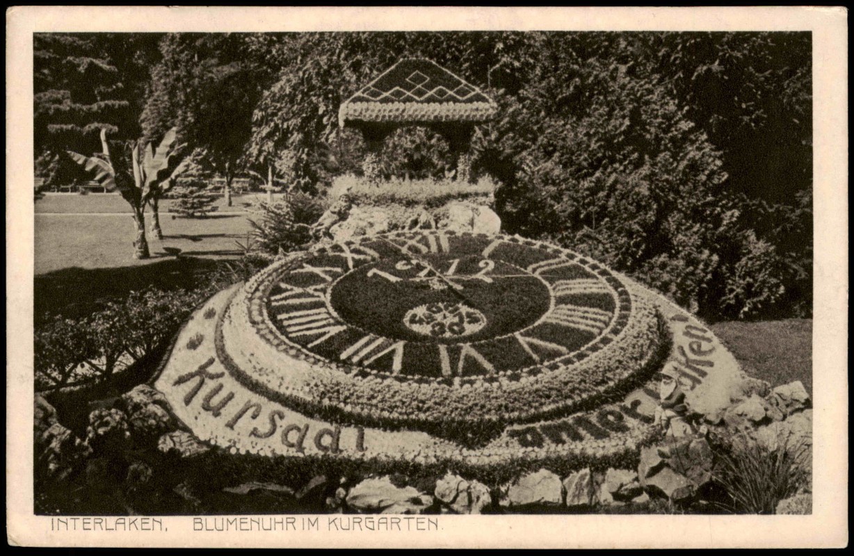Postcart: BLUMENUHR IM KURGARTEN - Interlaken