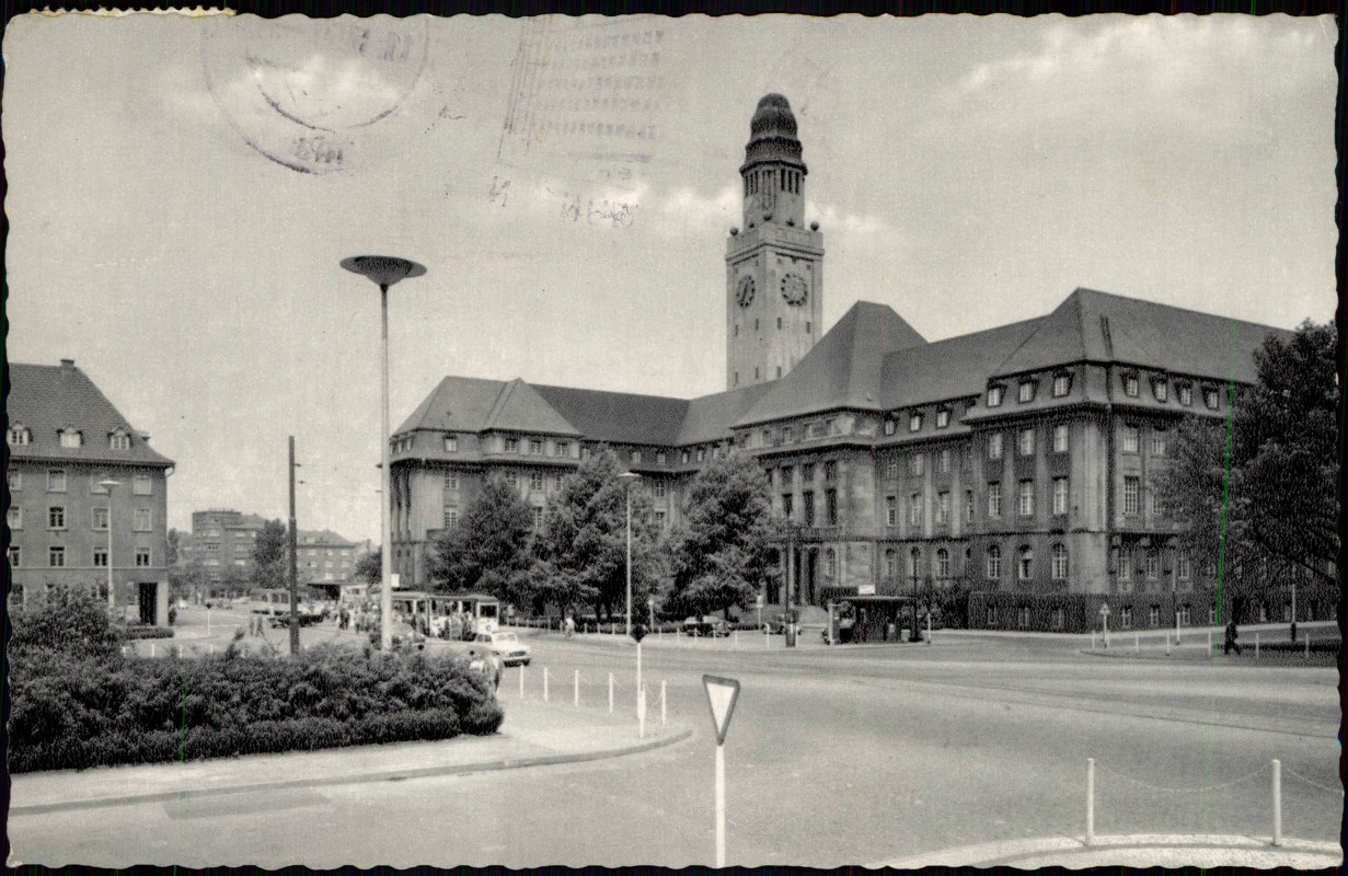 Postcart: Straße, Rathaus - Tankstelle - Buer-Gelsenkirchen
