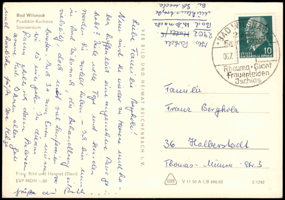 Photo Card: Puschkin-Kurhaus Speiseraum - Bad Wilsnack