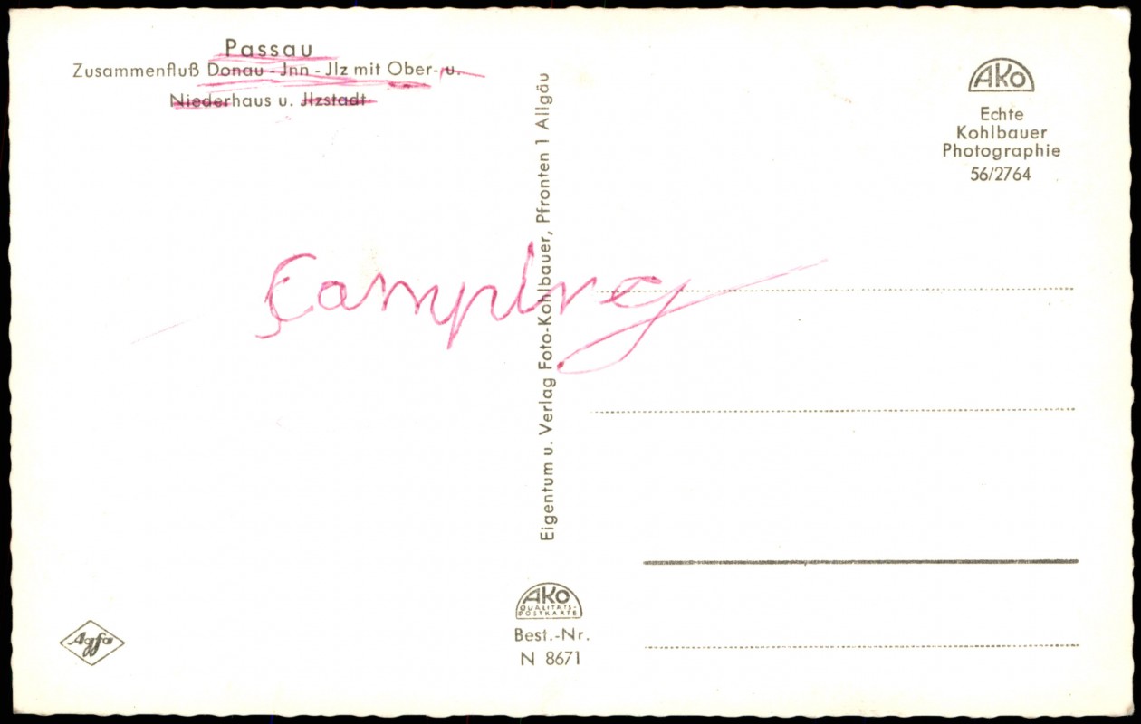 Photo Card: Zusammenfluß Donau - Inn - Jlz - Passau