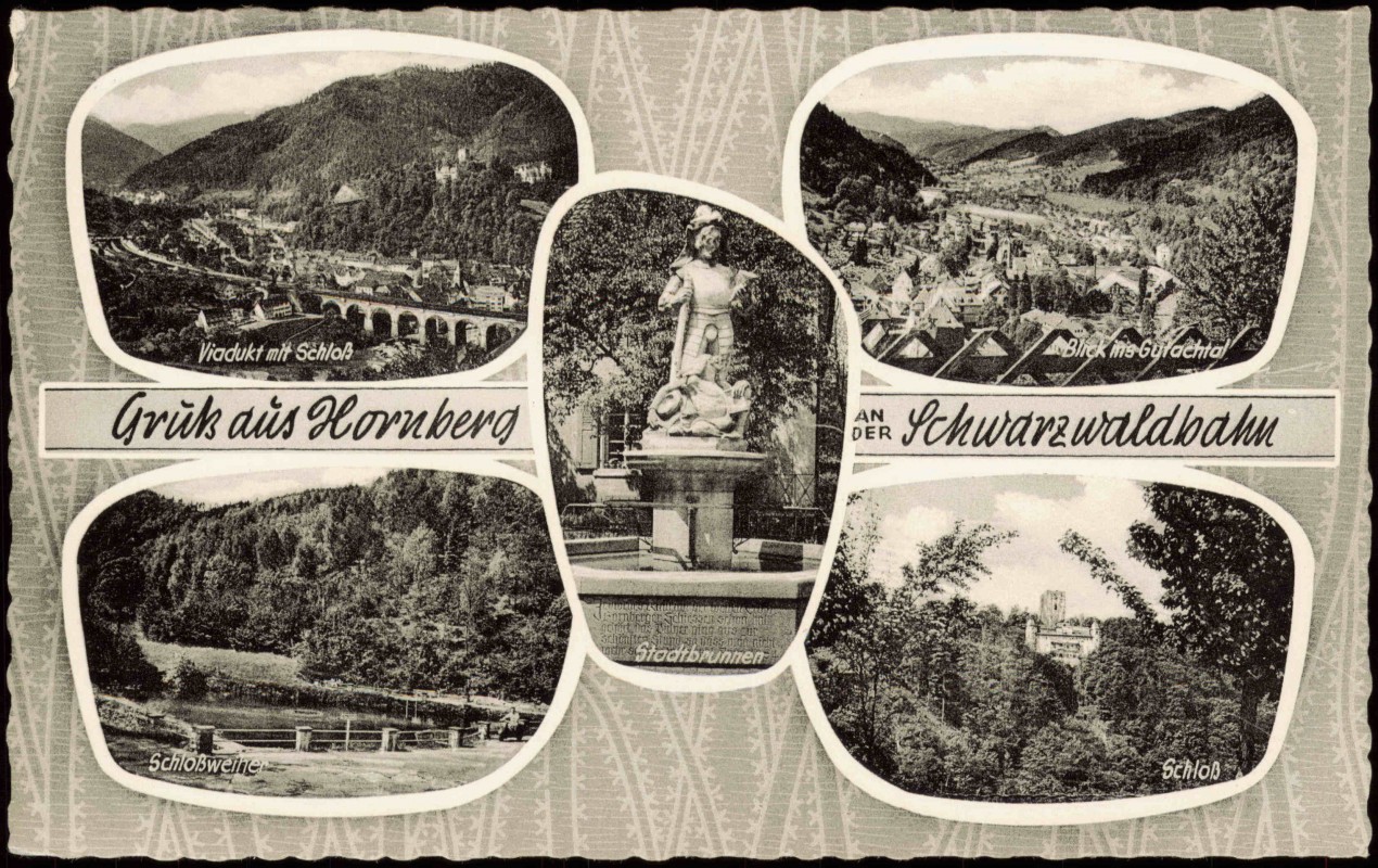Photo Card: Mehrbild-AK mit Gutachtal, Schloß-Weiher, Schloss, Viadukt - Hornberg