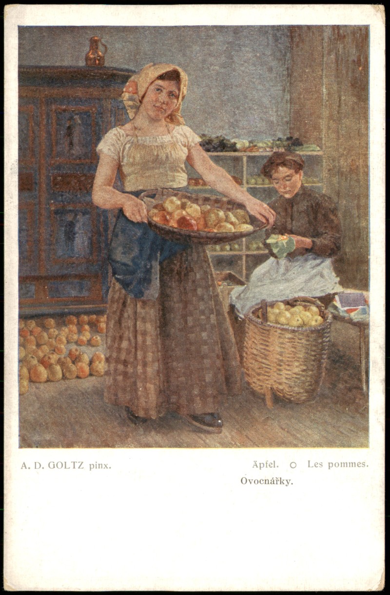 - Künstlerkarte Kunstwerk Künstler A. D. GOLTZ pinx. Les pommes Äpfel