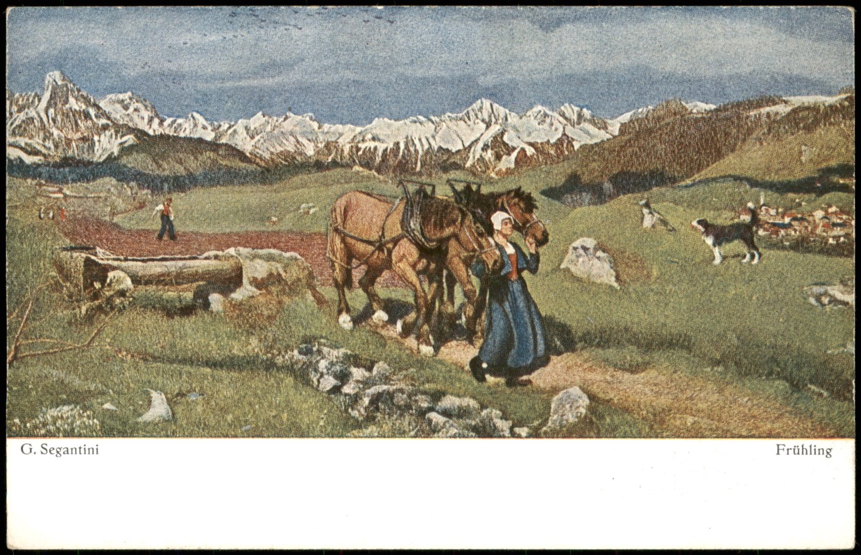 - Frühling G. Segantini Künstlerkarte: Gemälde / Kunstwerke Frau mit Pferden