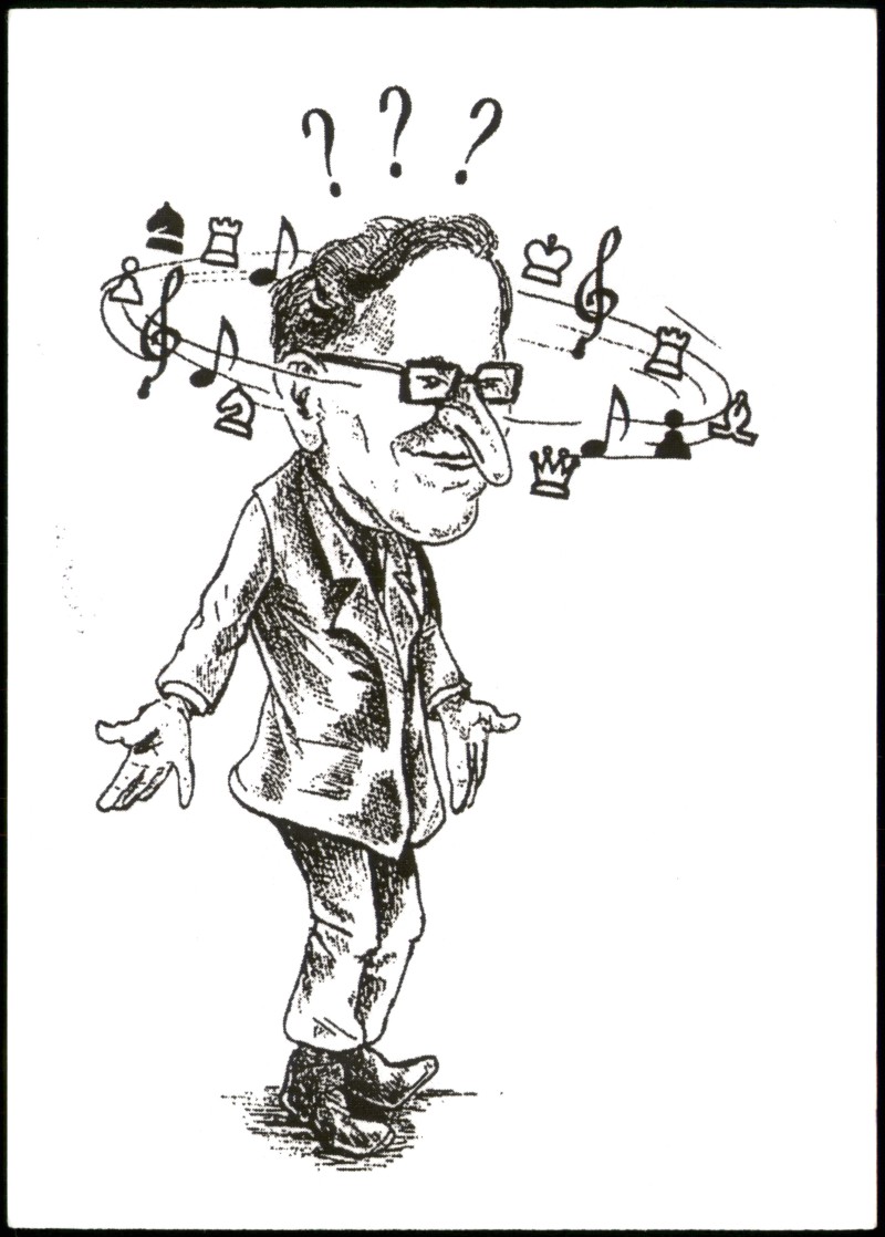 Postcart: Schach Chess - Spiel Scherzkarte Mann schwirrt der Kopf
