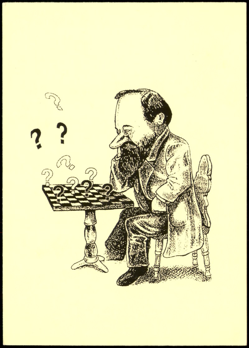 - Schach Chess - Spiel Künstlerkarte Mann vor Schachbrett