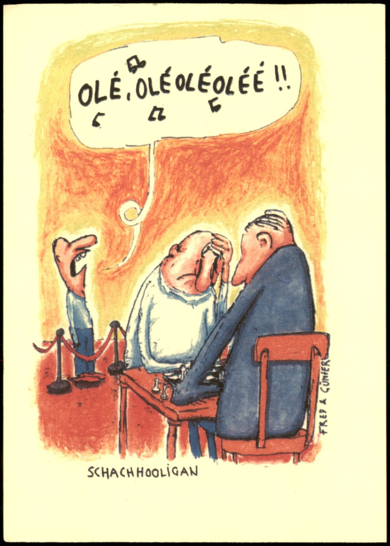Postcart: Schach Chess - Spiel Ole Ole - Schach-Hooligan
