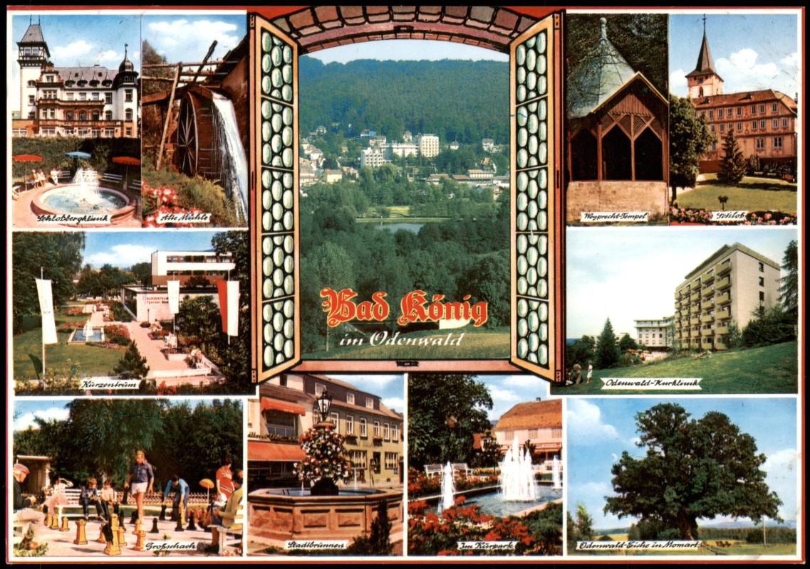 Photo Card: Mehrbild-AK u.a. Großschach, Kurpark, Brunnen uvm. - Bad König