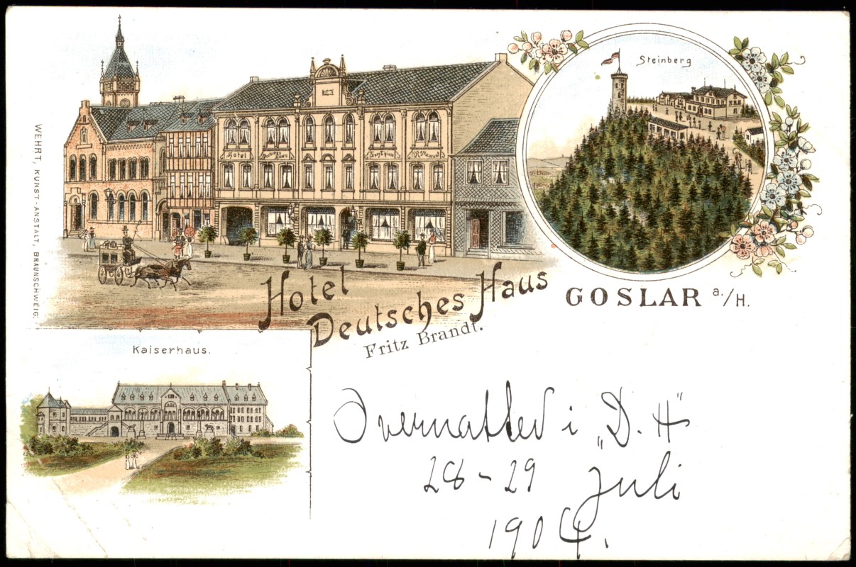 Postcart: Hotel Deutsches Haus, Steinberg, Kaiserhaus - Goslar