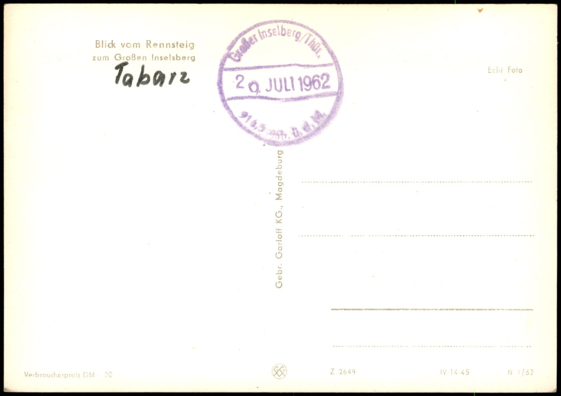 Photo Card: Blick vom Rennsteig zum Großen Inselsberg - Brotterode