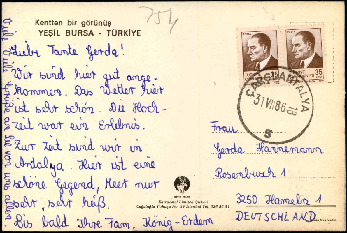 Postcart: Kentten bir görünüş - Προύσα Prousa
