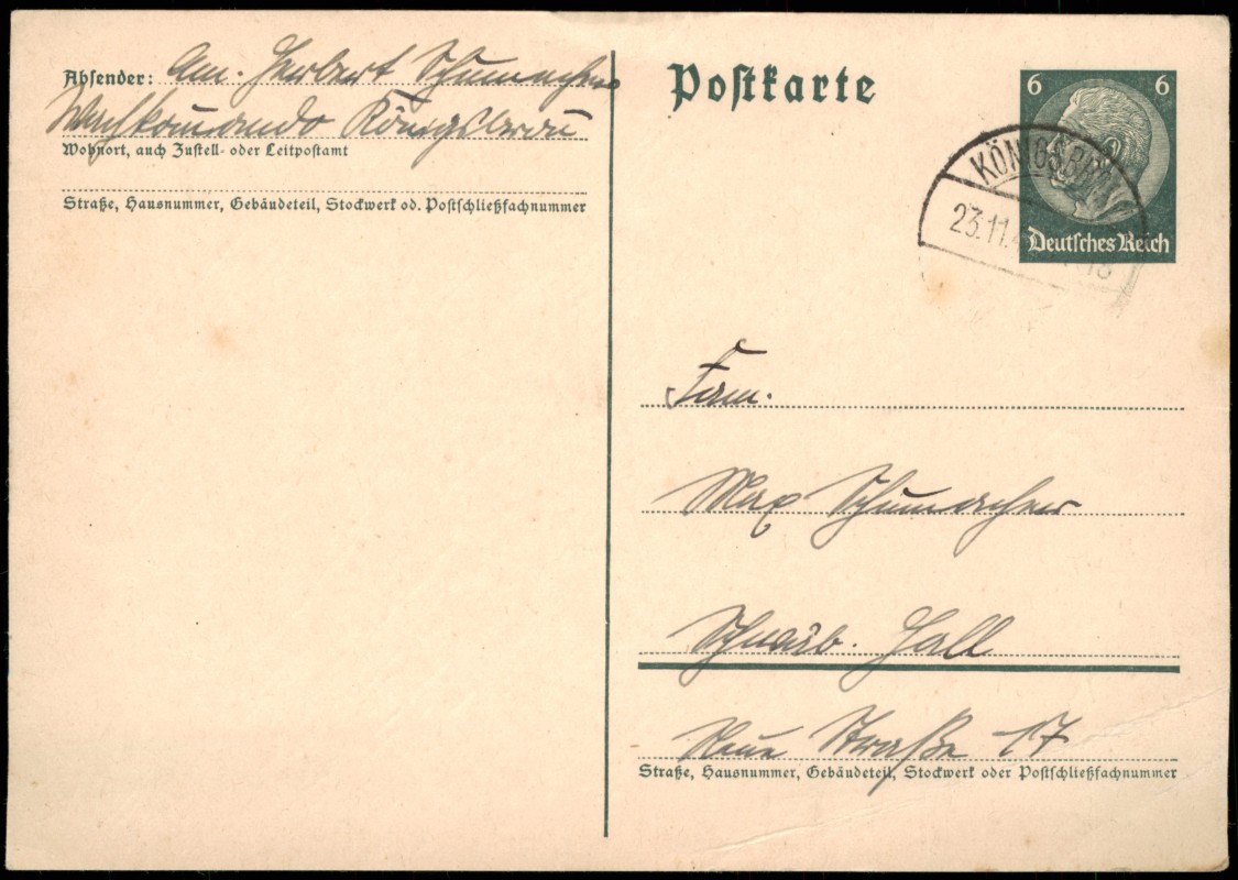 Postcart: Ganzsachen - Deutsches Reich Hindenburg Stempel Königsbrück