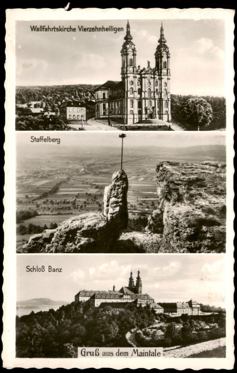 Postcart: 3 Bild Banz, Kirche, Staffelberg - Bad Staffelstein