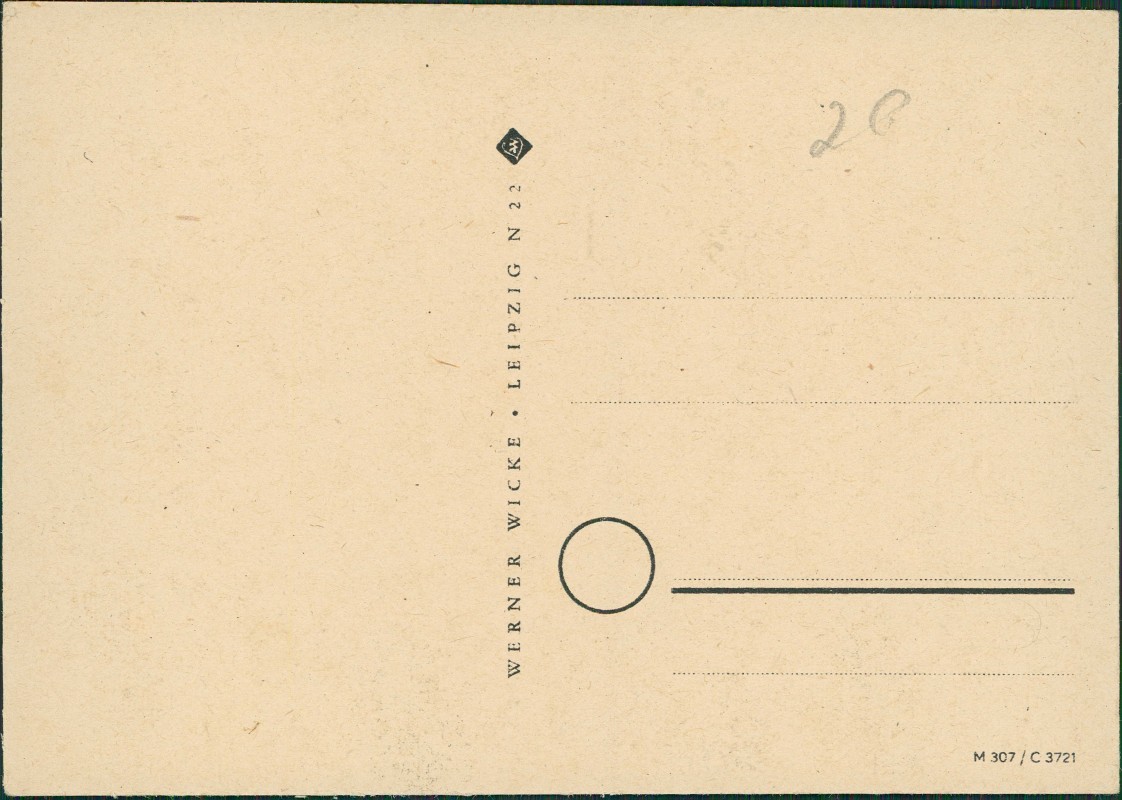 - Künstlerkarte: Schornsteinfeger mit Glückssymbolen (Pilz Schwein Kleeblatt am Hut)