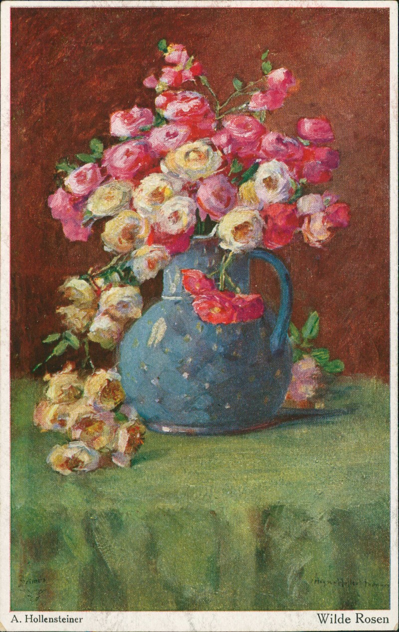 Postcart: Künstlerkarte A. Hollensteiner Wilde Rosen