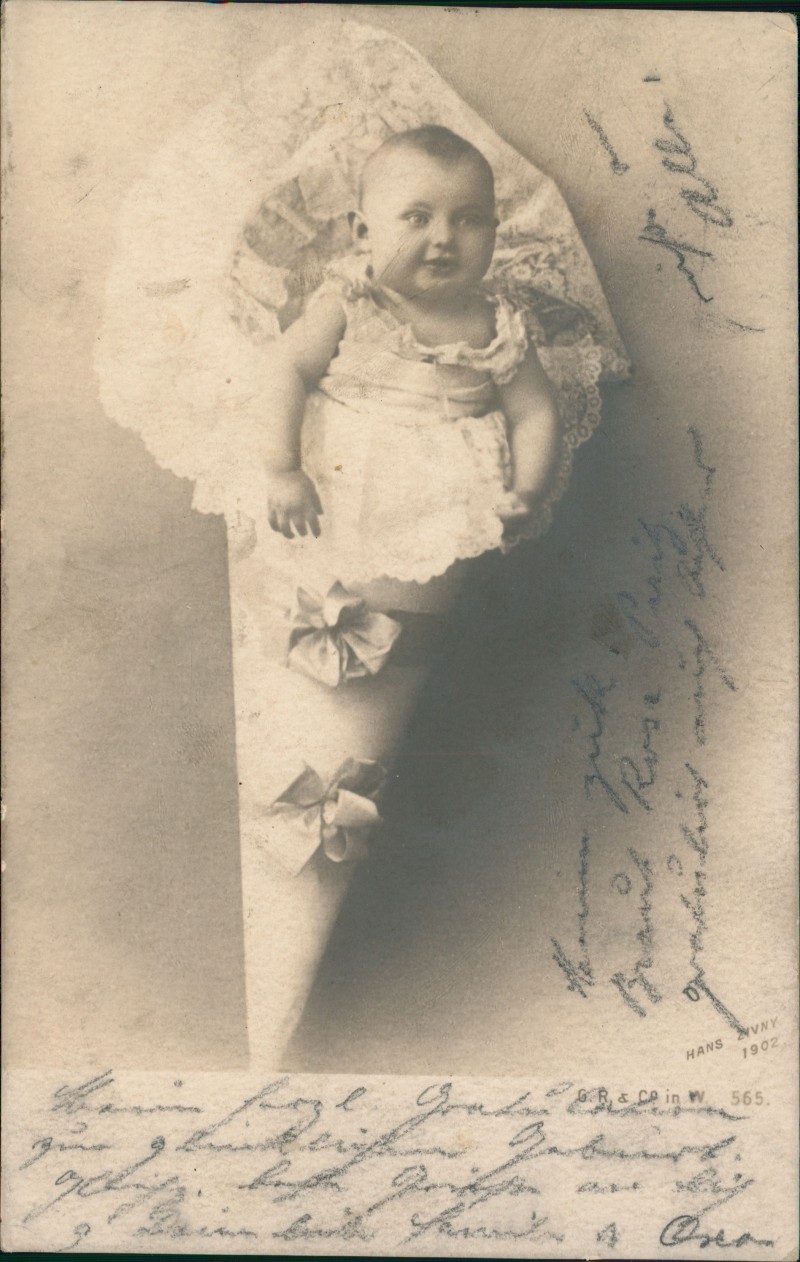 Postcart: Fotokunst kleines Kind in Zuckertüte
