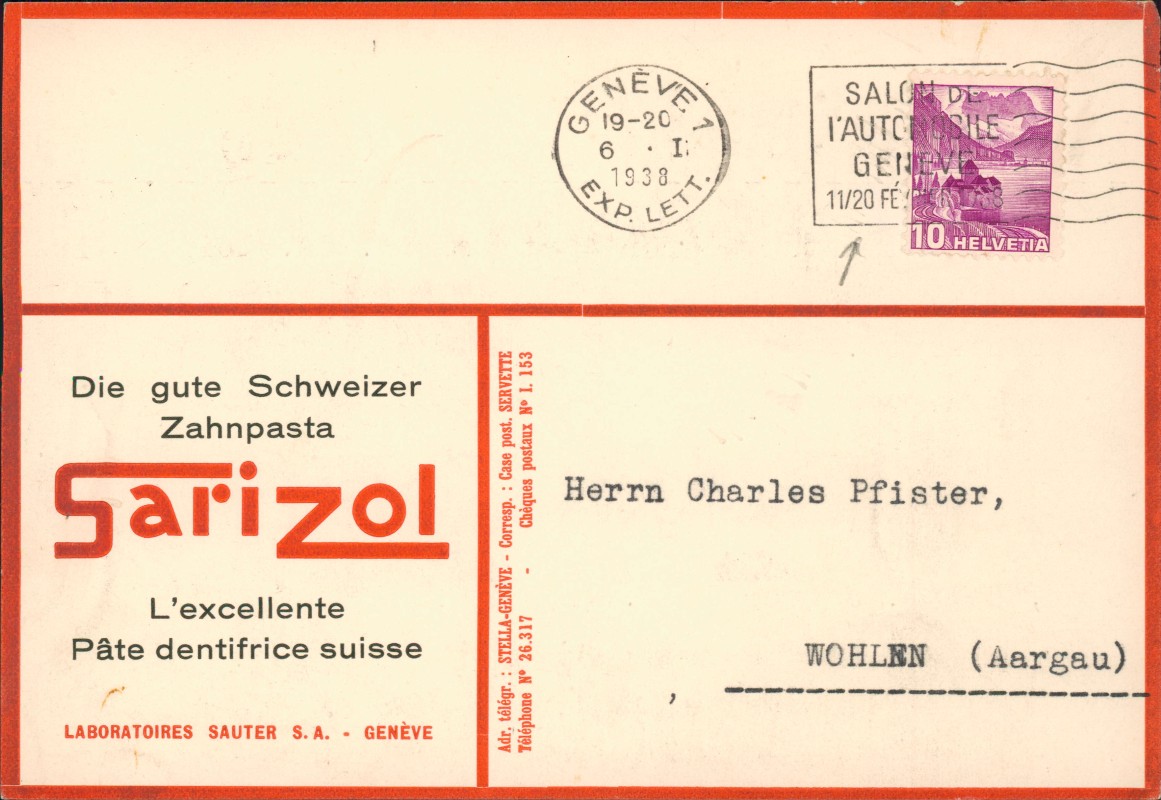 - Schweiz Helvetia Werbekarte Zahnpasta Sarizol Geneve Genf