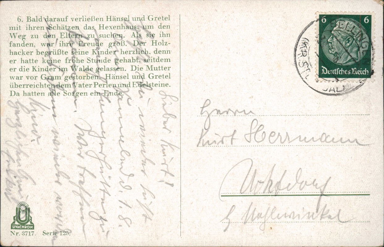 Postcart: Märchen Brüder Grimm Hänsel und Gretel Otto Kubel pinx