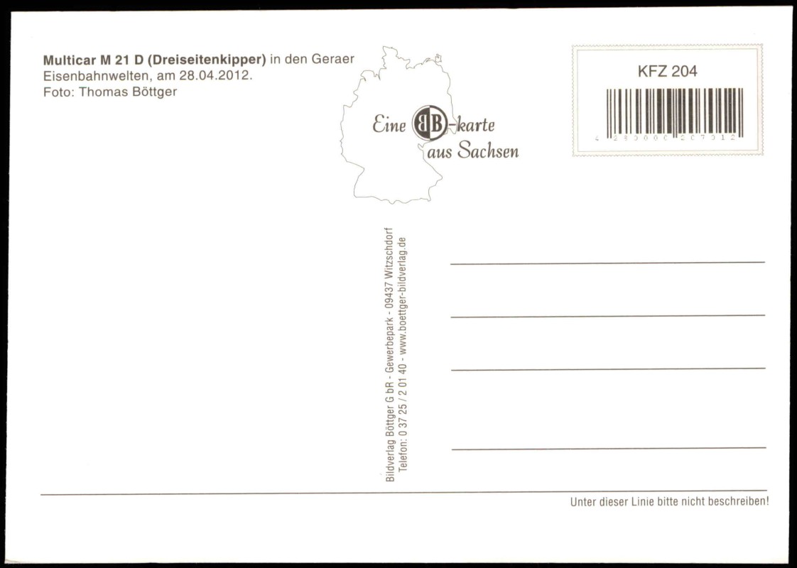 Postcart: Multicar M 21 D Dreiseitenkipper in den Gera Eisenbahnwelten