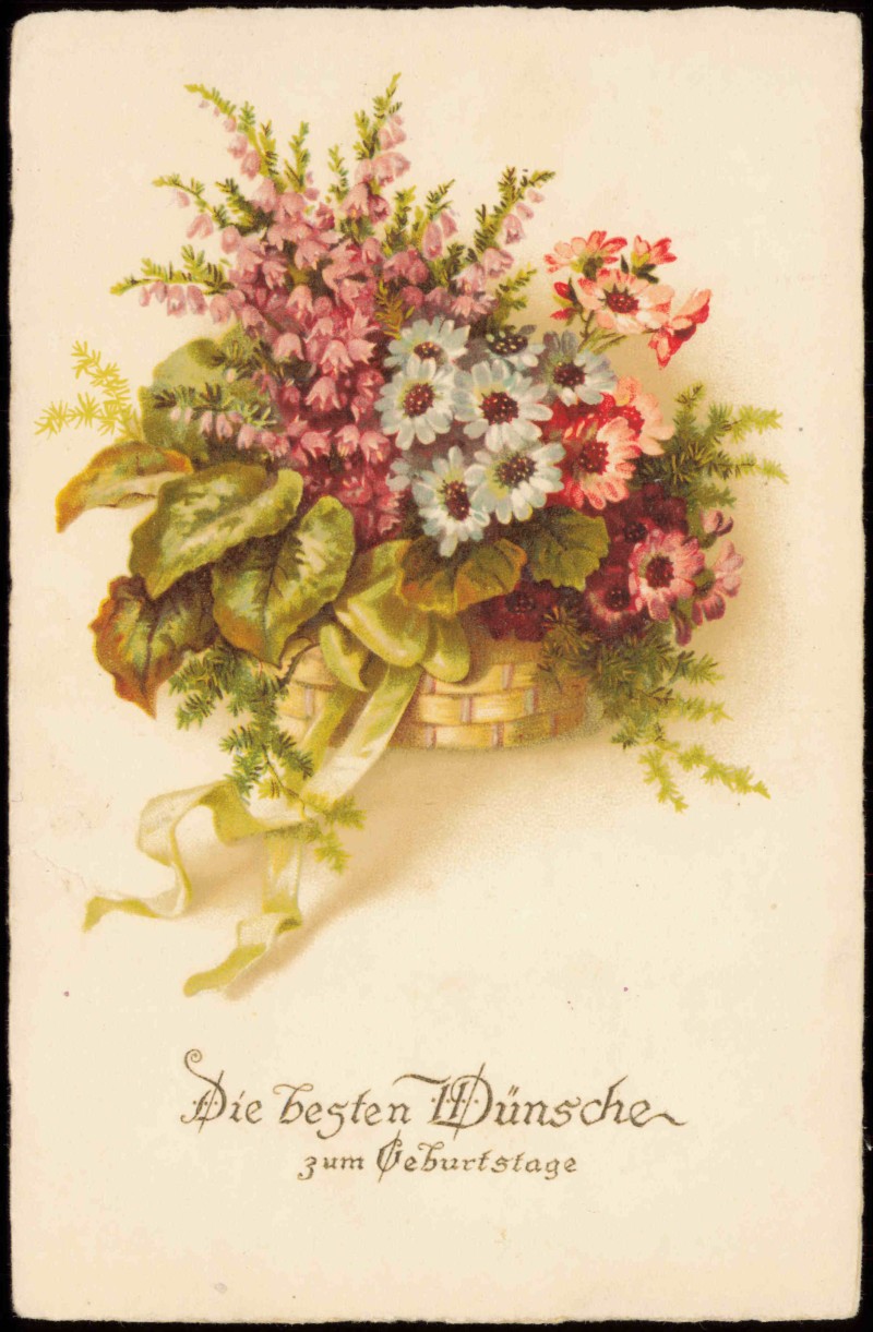 Postcart: Glückwunsch Geburtstag Birthday Blumen im Korb