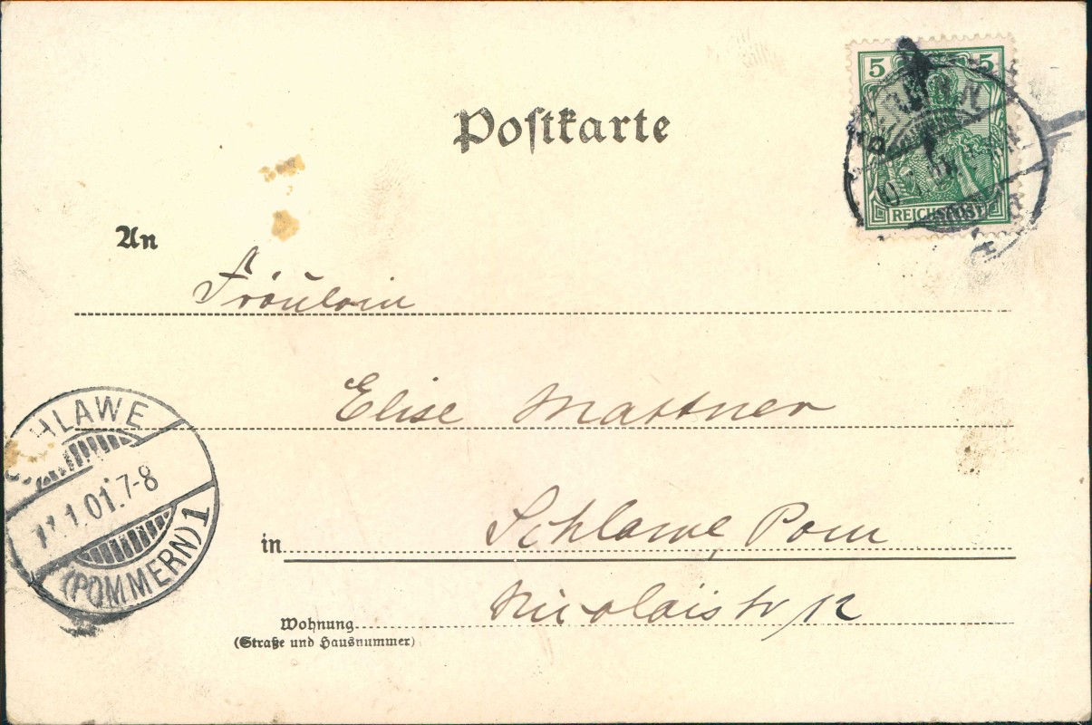 - Künstlerkarte Zweig mit Perlenblüte Stadt und Windmühle