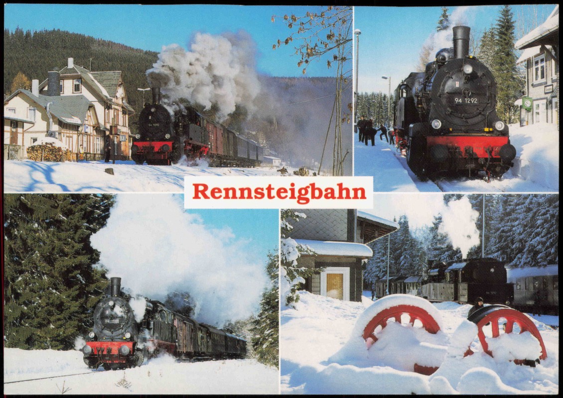 Postcart: Rennsteigbahn Museumslokomotive 94 1292 im Winter - .Thüringen