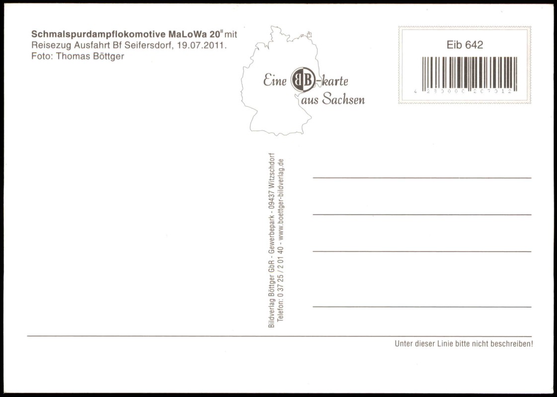 Photo Card: Schmalspurdampflokomotive MaLowa 20 Reisezug Ausfahrt Bf Seifersdorf