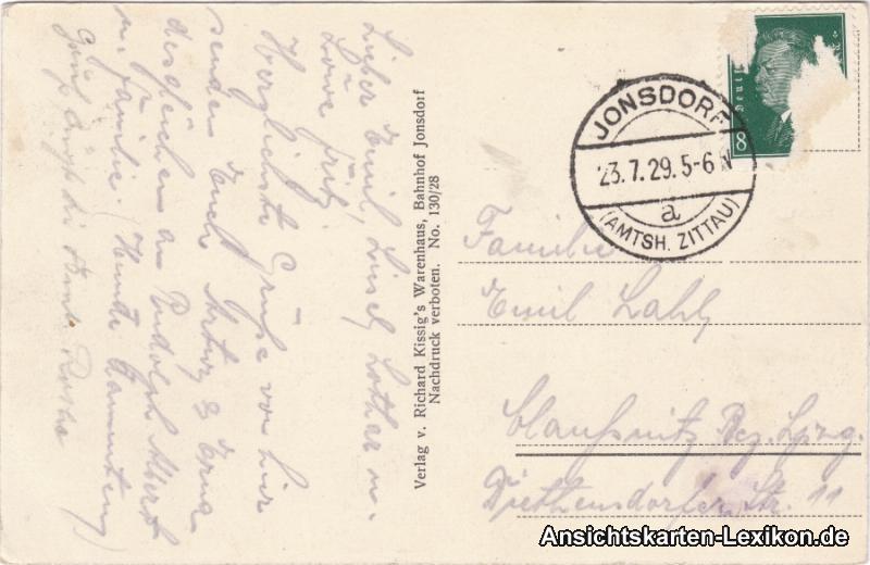 - R. Kissig's Warenhaus, Bahnhof Johnsdorf i. Sa.