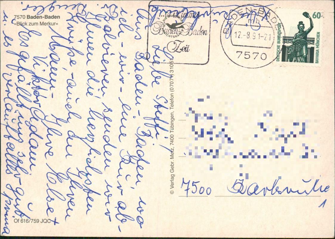 Photo Card: Panorama-Ansicht Blick zum Merkur - Baden-Baden