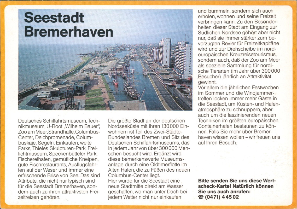 Photo Card: Bild-Postkarte mit Hafen-Ansicht, Antwortkarte Drucksache "Wertscheck" - Bremerhaven