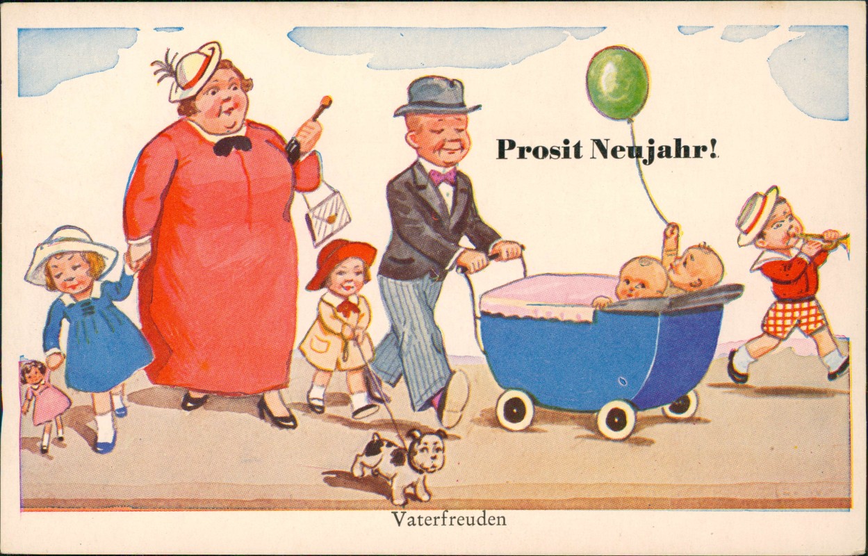 Postcart: Scherzkarte Prosit Neujahr Sylvester Vaterfreuden