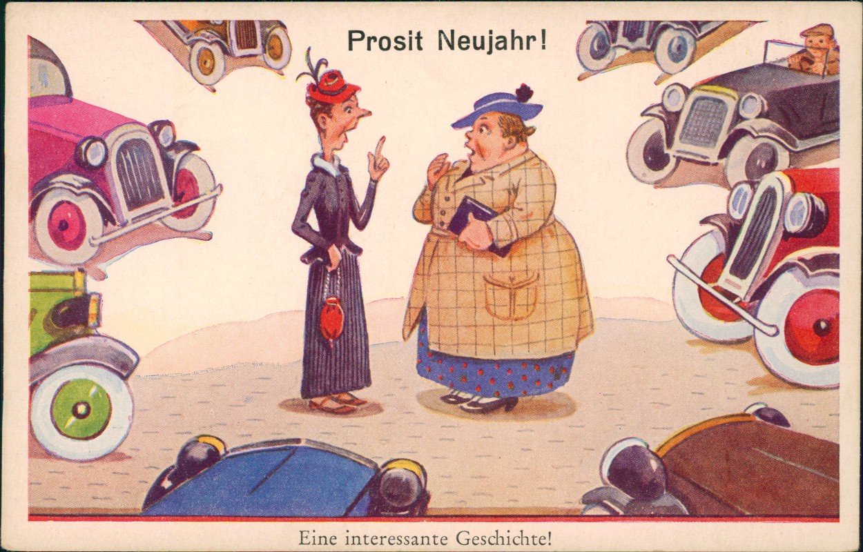 Postcart: Scherzkarte Neujahr Sylvester New Year Eine interessante Geschichte!