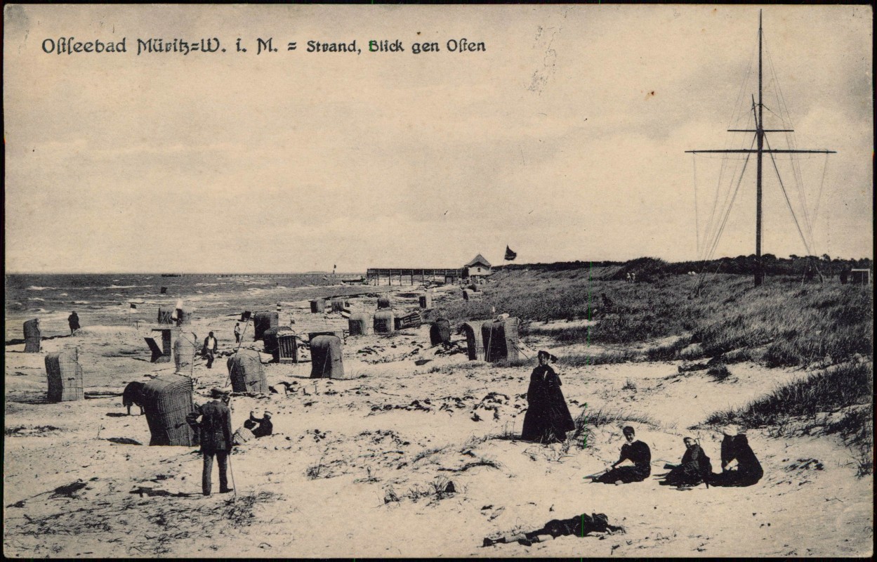 Postcart: Strand gen Osten Seebrücke Mast - Graal-Müritz