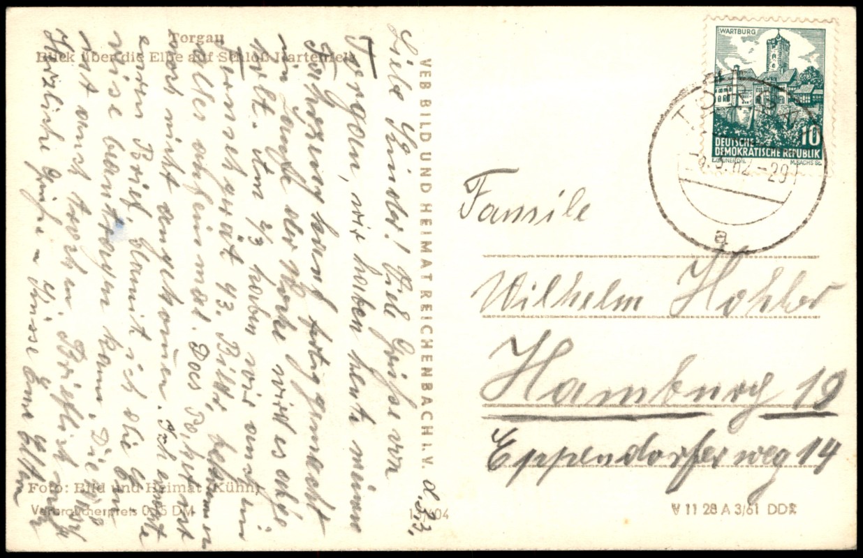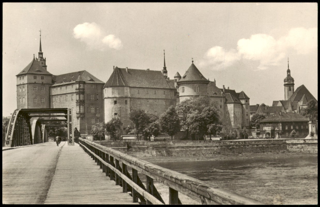 Postcart: Blick über die Elbbrücke Schloss Hartenfels - Torgau
