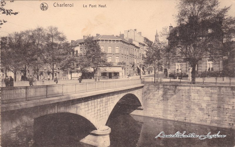 Postcart: Le Pont de Neuf - Eckgeschäft und Straße - Charleroi