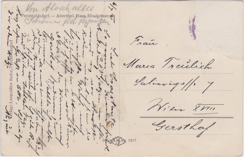 Postcart: Altertümliches Haus, Elisabethstrasse - Perchtoldsdorf