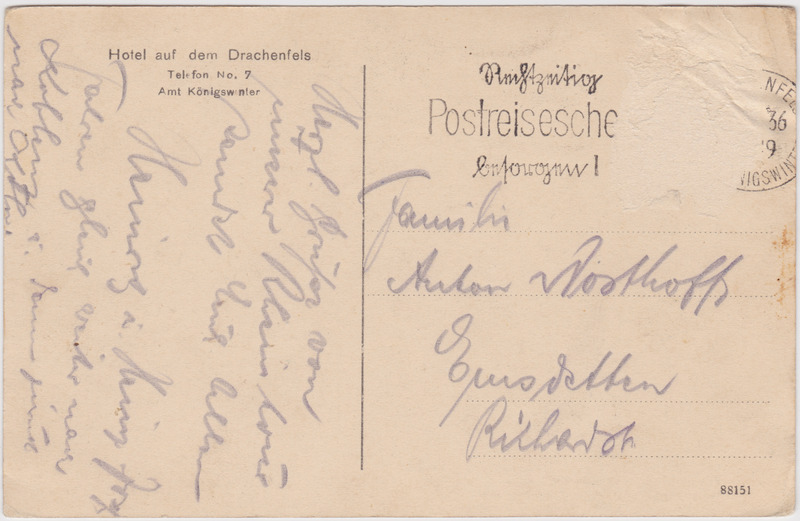 Postcart: Hotel auf dem Drachenfels - Königswinter