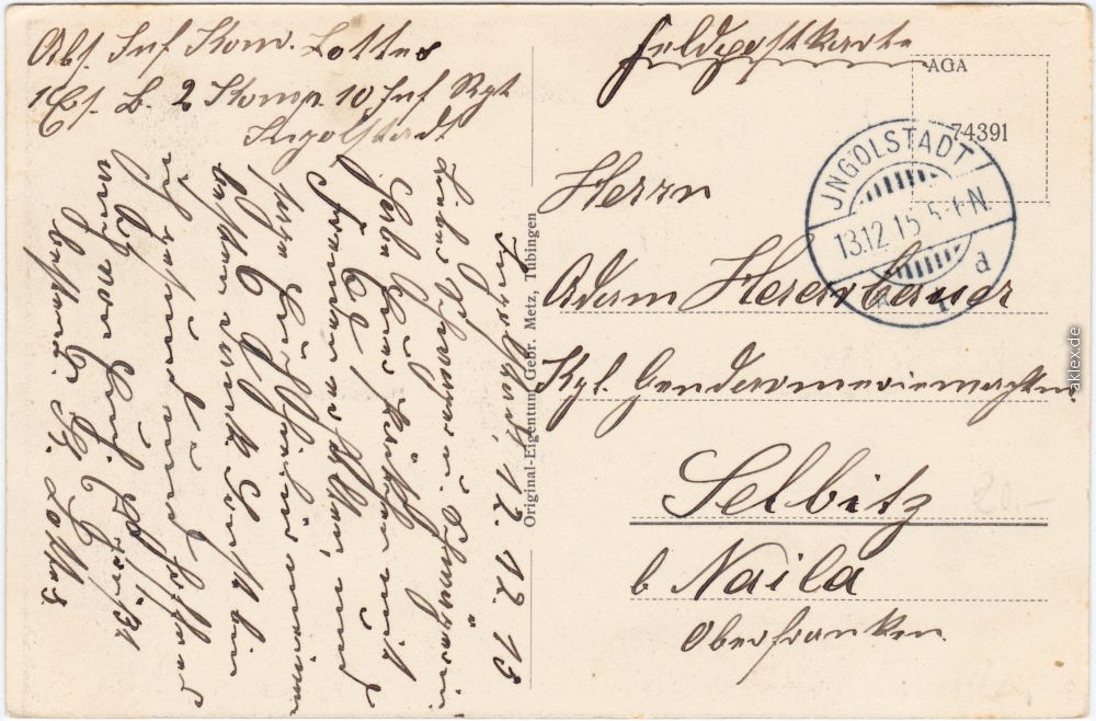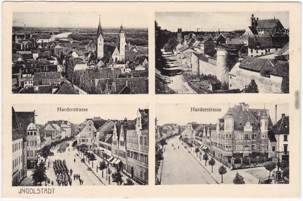 Postcart: 4 Bild: Haarderstraße mit Soldaten und Panorama - Ingolstadt