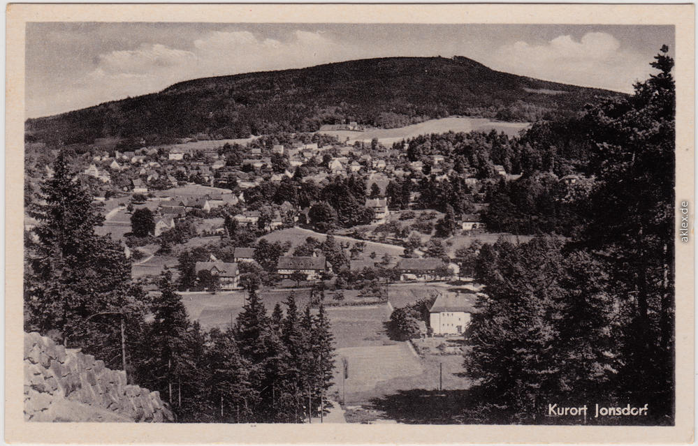Postcart: Panorama mit Jonsberg. Blick v. d. Sprungschanze - Jonsdorf
