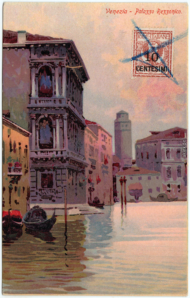 Postcart: Palazzo Rezzonico (Briefmarke 10 Centimes Überdruck) - Venice
