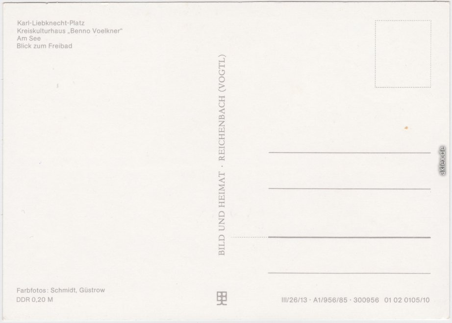 - Karl-Liebknecht-Platz, Kreiskulturhaus "Benno Voelkner", Am See, Blick zum Freibad