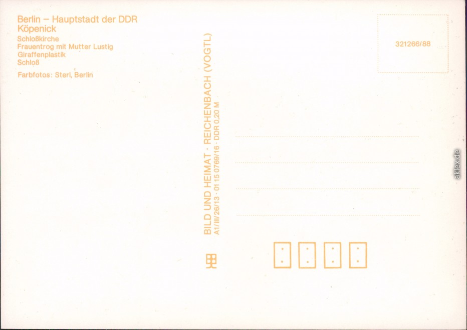 Postcart: Schloßkirche, Frauentrog mit Mutter Lustig, Giraffenplastik, Schloß - Köpenick-Berlin