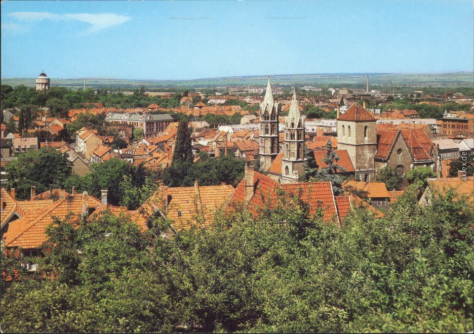 Postcart: Überblick von der Stadt mit Kirchturmspitze im Zentrum - Arnstadt