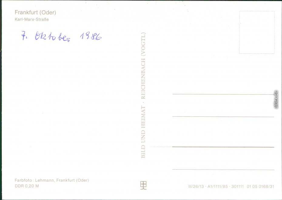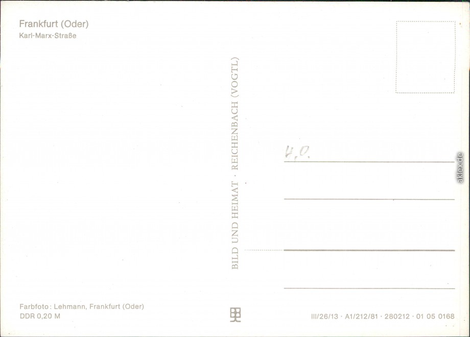 Postcart: Karl-Marx-Straße mit Wasserspiel und Blick zur Kirche - Frankfurt (Oder)