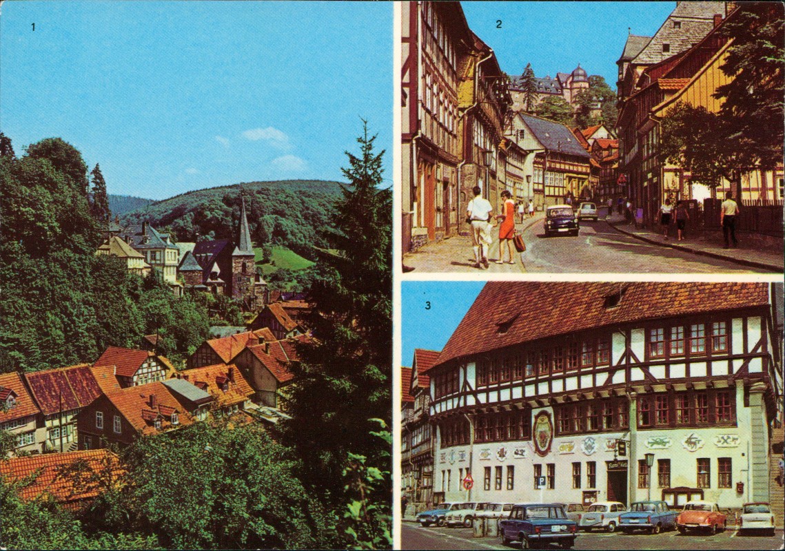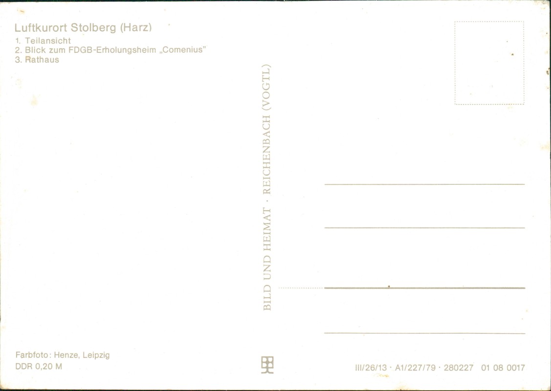 Postcart: Teilansicht, Schloss und Fereinheim "Comenius", Rathaus - Stolberg (Harz)