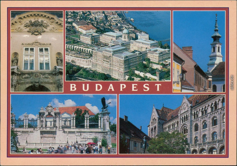 Postcart: Verschiedene Ansichten aus der Stadt mit Burgpalast, Kirche uvm. - Budapest