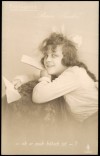 Lieder der Liebe (Serienkarte, Frühe Fotokunst) Frau nachdenklich mit Buch