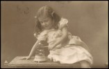Kinder Künstlerkarte Mädchen mit Vogelkäfig Fotokunst