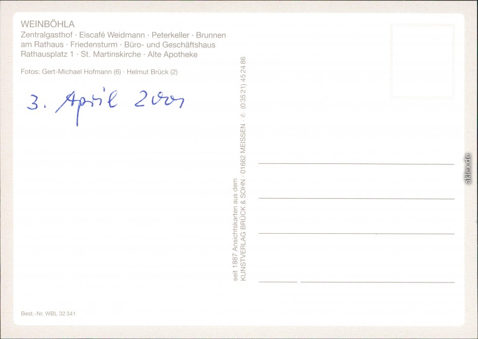 Postcart: Zentralgasthof, Eiscafé, Peterkeller, Brunnen, Friedensturm - Weinböhla
